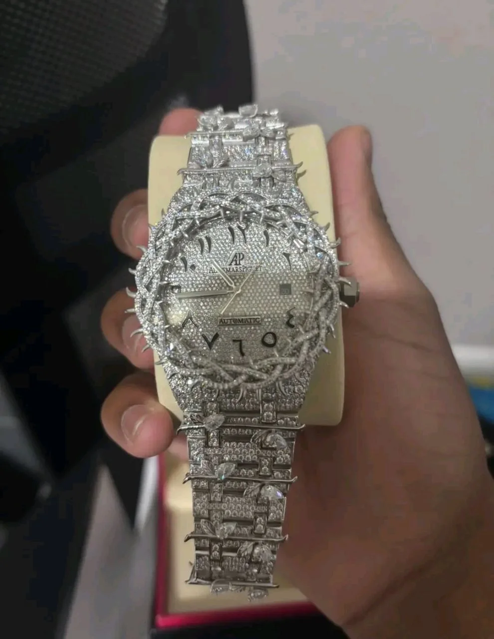 Beneath its stunning exterior, the White Arabic Dial AP Crown Thorns Watch houses a precision-engineered automatic movement. This ensures exceptional timekeeping accuracy and eliminates the need for batteries, giving the wearer a sense of mechanical connection and tradition. The movement is encased in a robust, finely polished case designed to withstand daily wear while retaining its luxury appeal. For added durability, the timepiece features scratch-resistant sapphire crystal—a hallmark of top-tier watchmaking—protecting the dial while providing a clear, glare-free view.